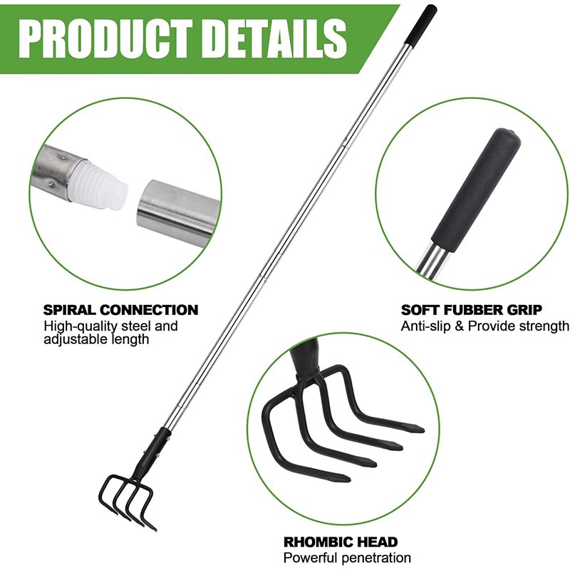- [ Adjustable Design ] : Say goodbye to uncomfortable gardening experiences. Garden hand cultivator features a long handle that is adjustable and extendable, allowing you to customize its length to suit your preferences and needs. The soft padded grip at the end of the handle also provides a comfortable and secure hold.