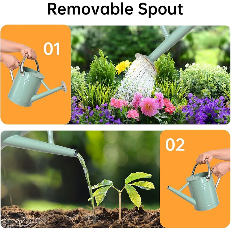 - 【Stylish Design 】The cream green watering cans with a stylish design is hand-forged and welded by professional craftsmen. You don’t need to hide this plant watering can because its elegant color and appearance makes it a perfect garden decoration. You can also use this decorative watering can as a planter to display flowers, the colorful botanticals will look outstanding in this cute watering can.