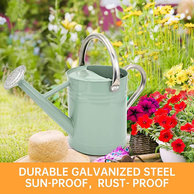 - 【Durable】Watering can is made of high quality galvanized metal. It is rust-proof, sun-proof and drop-proof, so it can be perfectly adapted to the outdoor environment and used for many years. The special glue ensures that our watering cans do not leak.