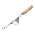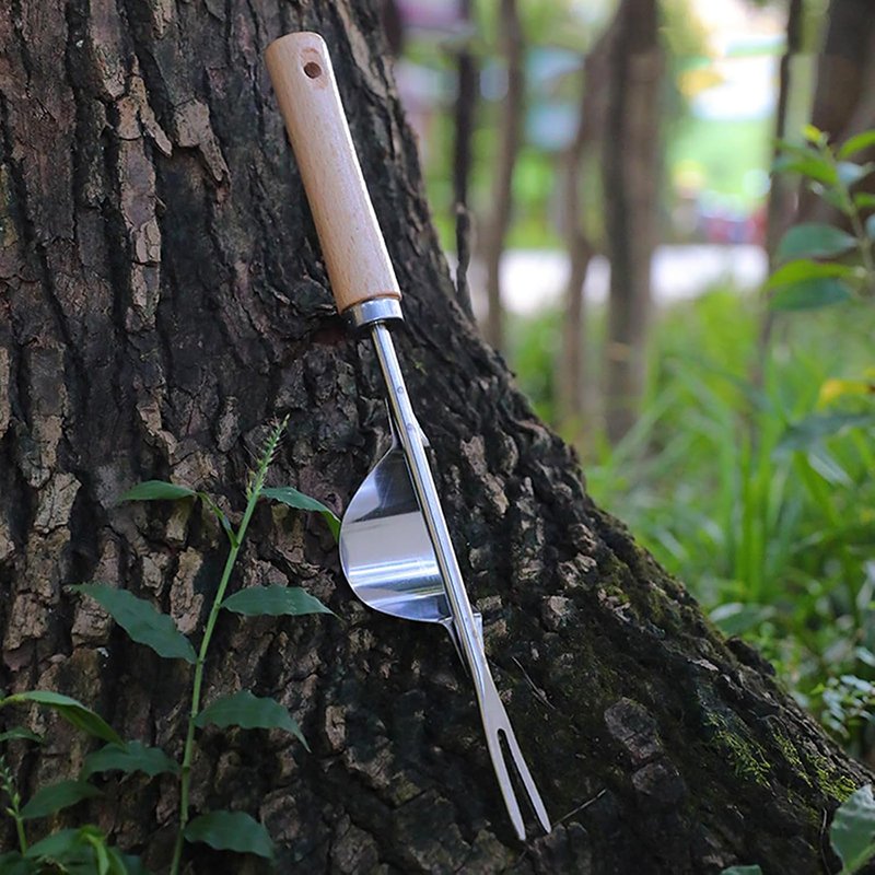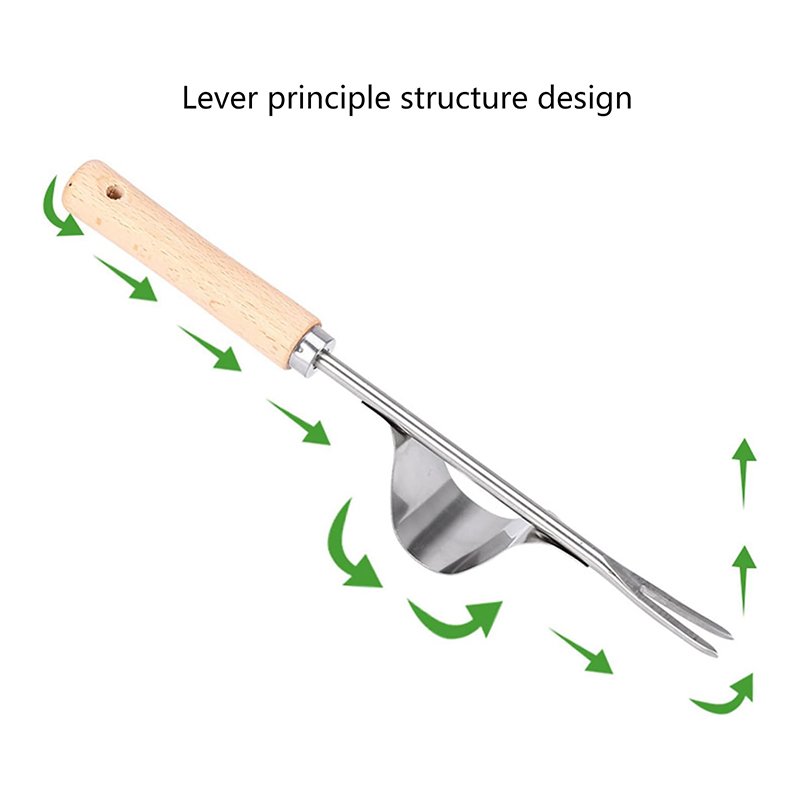 - The weed cutter is stainless steel with a smooth natural wooden handle, not easy to break.